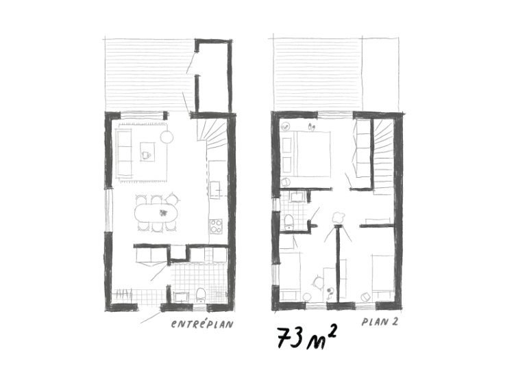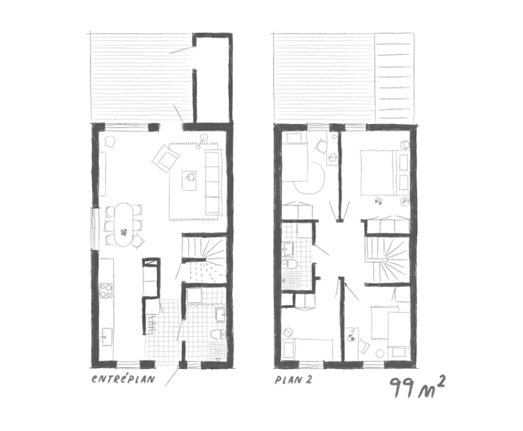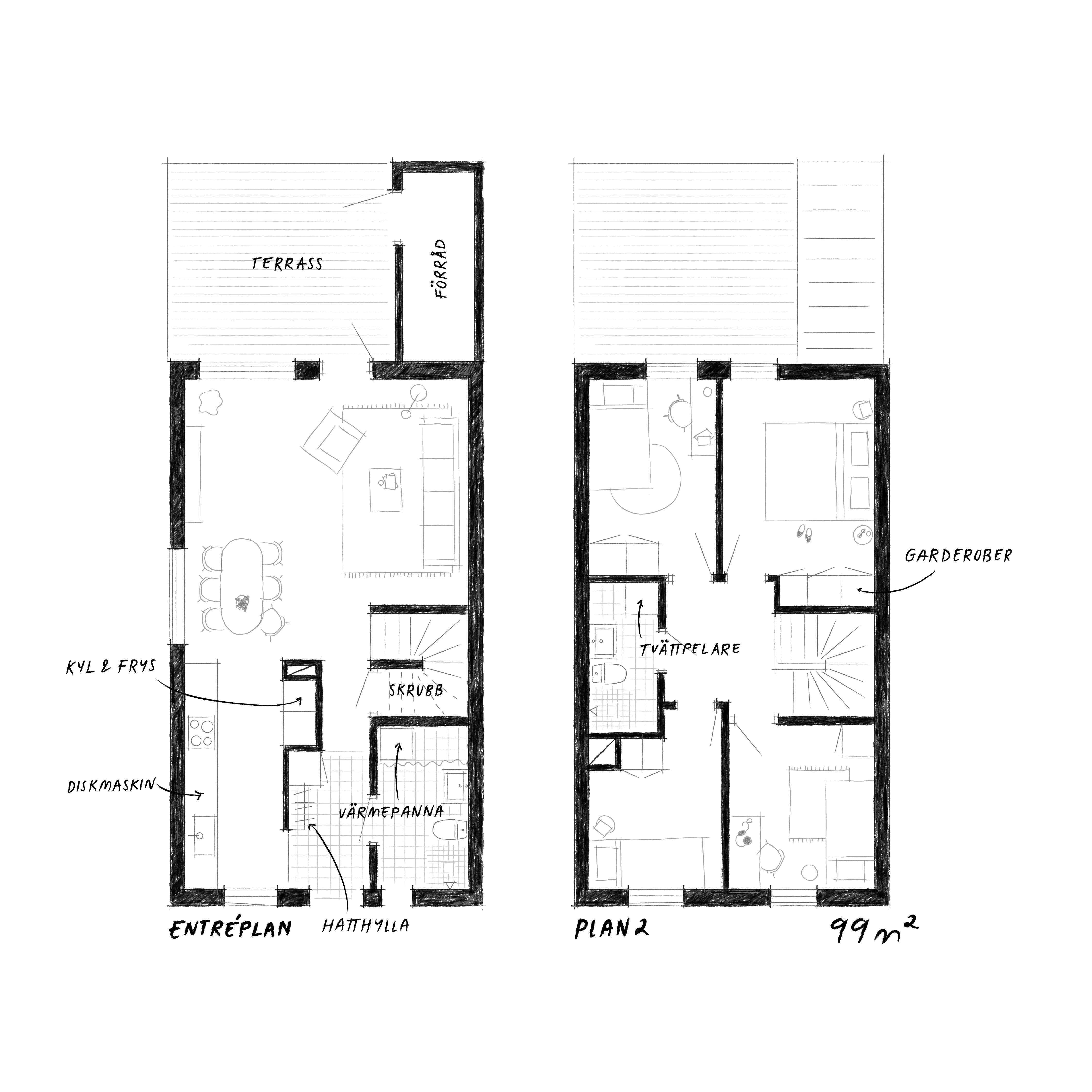 Varje hem har sin egen lilla trädgård och terrass, utformade för att ge både avskildhet och möjligheter till gemenskap. Här finns plats för grillkvällar, umgänge eller en stunds lugn i sin egen gröna oas där barnen kan leka fritt.